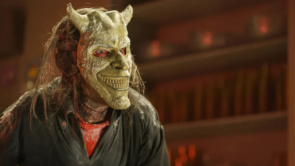 “这个面具是由汤姆·萨维尼和贾森·贝克制作的,”希尔说。 “我看到面具上有可更换的嘴:有时魔鬼的脸在咧嘴笑,有时皱着眉头,有时他根本没有嘴。我看到那个面具就想,‘哦,我想会有很多这样的电影。’它给我的印象是立即具有标志性,就像弗雷迪·克鲁格的手套具有标志性一样,就像迈克尔·迈尔斯的面具具有标志性一样。我想,“这是噩梦般的燃料,人们会想要很多它。”我认为他有潜力成为这些令人难忘的持续恐怖恶棍,如果是这样的话,我宁愿他出演好电影而不是坏电影。”